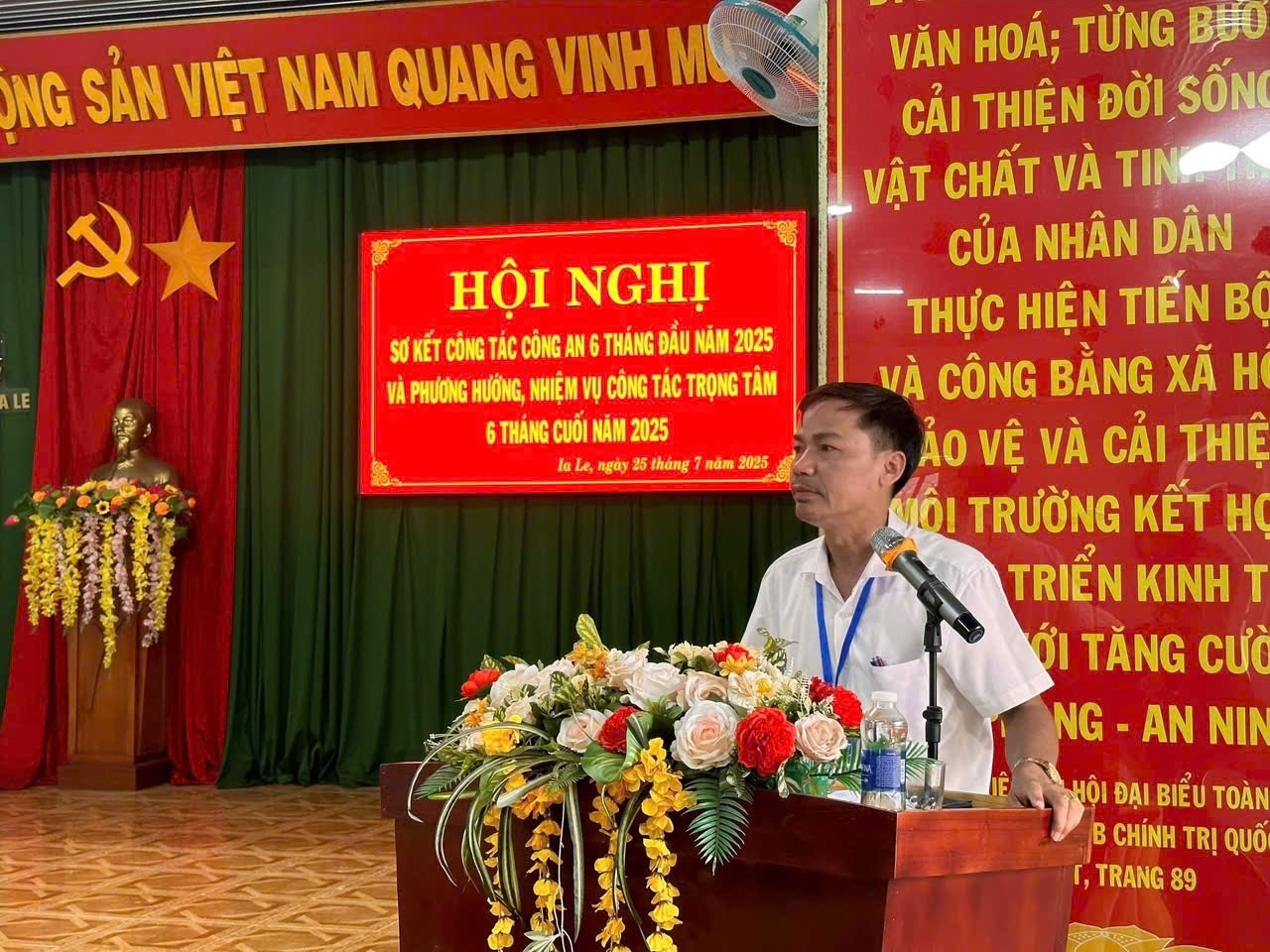 Chiều ngày 25/7/2025, tại Hội trường UBND xã, Công an xã Ia Le tổ chức Hội nghị sơ kết công tác Công an 6 tháng đầu năm và triển khai nhiệm vụ công tác 6 tháng cuối năm 2025. Dự và chỉ đạo Hội nghị có đồng chí Lưu Xuân Thành – Phó bí thư Đảng uỷ, Chủ tịch UBND xã, đ/c Hồ Hữu Ngọc - Phó chủ tịch UBMTTQ VN xã. Tham dự Hội nghị còn có chỉ huy và toàn thể CBCS của Công an xã, đại diện các Tổ ANTT cở sở.