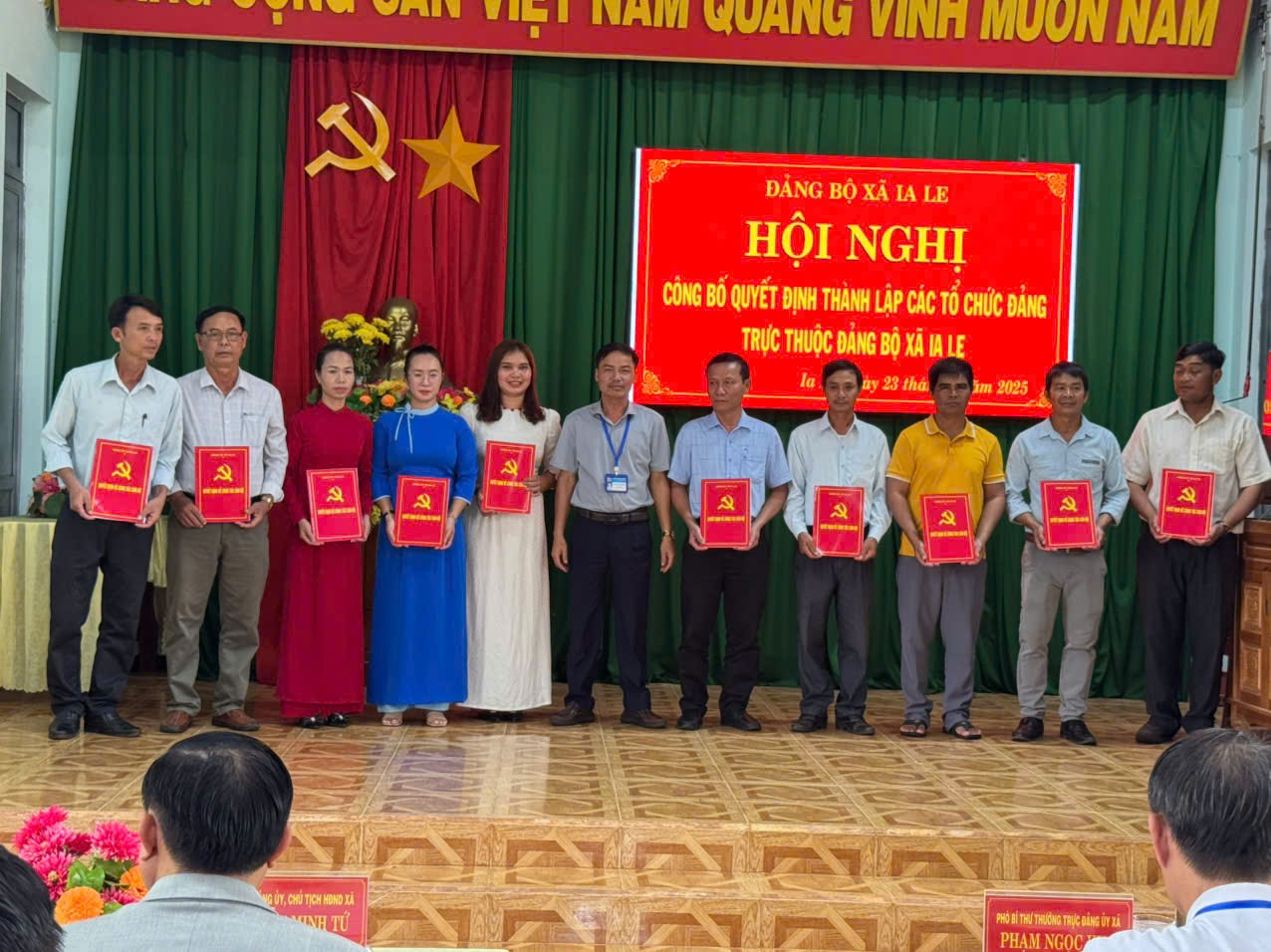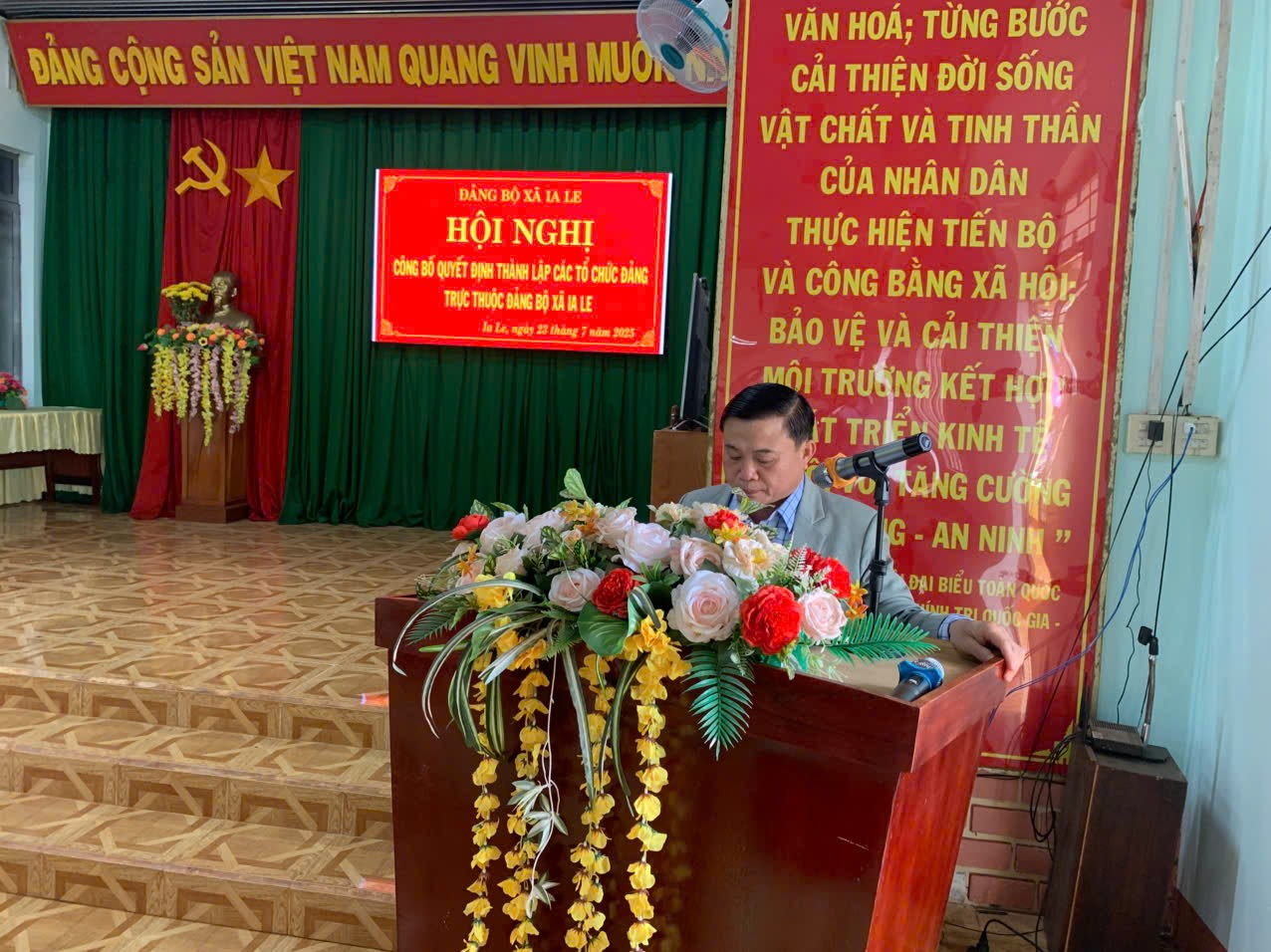 Chiều ngày 23/7/2025, tại Hội trường UBND xã Ia Le, Đảng bộ xã Ia Le đã tổ chức Hội nghị công bố Quyết định thành lập các tổ chức Đảng trực thuộc Đảng bộ xã. Đây là một sự kiện có ý nghĩa quan trọng trong công tác xây dựng Đảng, góp phần kiện toàn tổ chức bộ máy, nâng cao năng lực lãnh đạo và sức chiến đấu của tổ chức Đảng ở cơ sở.