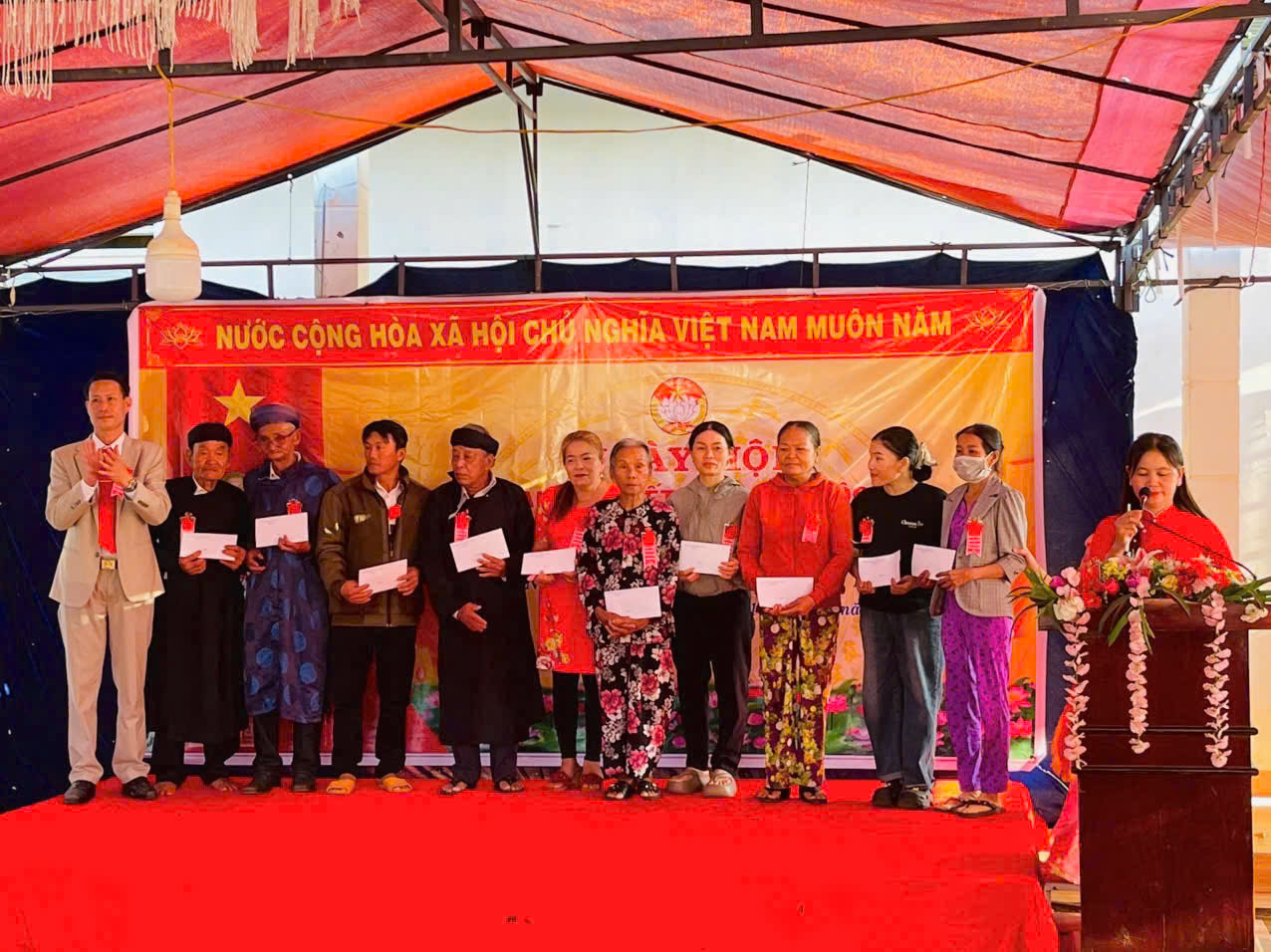 Đồng chí Nguyễn Thị Hiền - Chủ tịch MTTQVN xã và đồng chí Ngô Xuân Hùng - Phó CTUBMTTQVN xã trao tặng giấy khen cho 10 hộ gia đình có thành tích trong cuộc vận động của UBMTTQVN xã