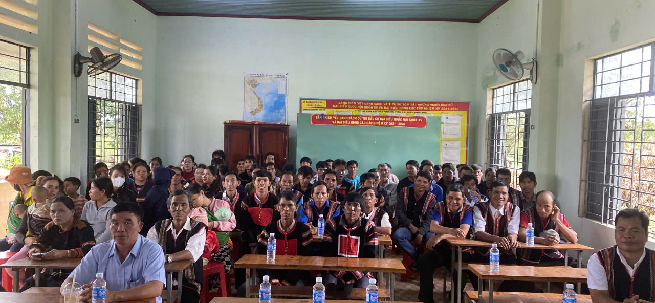 Không gian Ngày hội được trang trí trang trọng, cùng sự hiện diện của đại diện chính quyền địa phương, Ban Công tác Mặt trận thôn và đông đảo người dân. Bà con tham dự trong trang phục truyền thống, tạo nên nét đẹp văn hóa đặc trưng của cộng đồng các dân tộc tại Ia Bia.