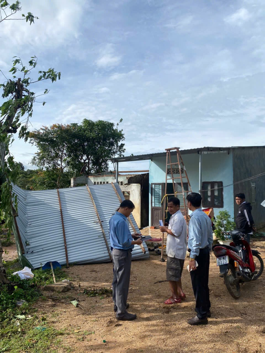 Qua khảo sát thực tế, bão đã làm tốc mái nhiều ngôi nhà, nứt tường, hư hại công trình phụ và làm ướt, ảnh hưởng đến nông sản của bà con – chủ yếu là cà phê và lúa đang trong giai đoạn thu hoạch. Một số khu vực bị cây cối ngã đổ, mái tôn bị cuốn xa, gây khó khăn cho sinh hoạt của người dân.