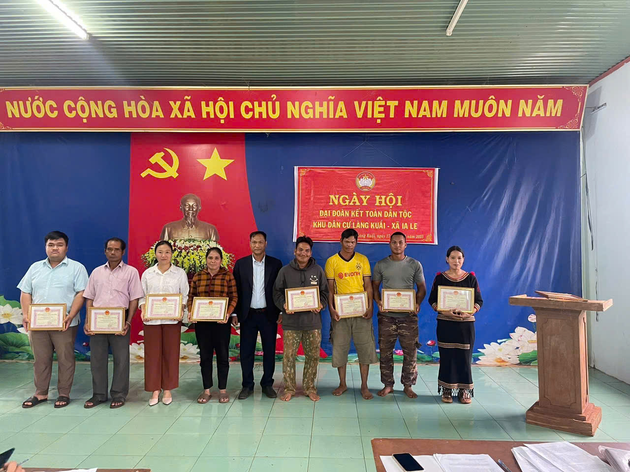 Chiều ngày 17/11/2025, làng Kuăi xã Ia Le tổ chức “Ngày hội Đại đoàn kết toàn dân tộc” năm 2025. Dự Ngày hội, có đồng chí Nguyễn Thị Hiền- Uỷ viên BTV Đảng uỷ, Chủ tịch UB MTTQ xã; đồng chí Hồ Hữu Ngọc – Phó Chủ tịch UBMTTQVN, đồng thời Chủ tịch Hội Nông dân xã, lãnh đạo các ban, ngành, đoàn thể xã; hệ thống chính trị thôn cùng đông đảo Nhân dân làng Kuăi Tại Ngày hội, các đại biểu và bà con trong thôn đã ôn lại truyền thống 95 năm Ngày thành lập Mặt trận Dân tộc thống nhất Việt Nam và báo cáo kết quả thực hiện các cuộc vận động, các phong trào thi đua yêu nước năm 2025.